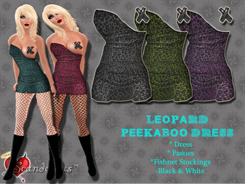 Scandalously sexy leopard print dress. Available in 5 colors. Sold separately in the vendor or the fat pack is on the wall.